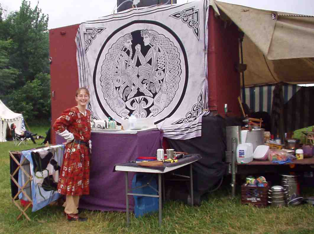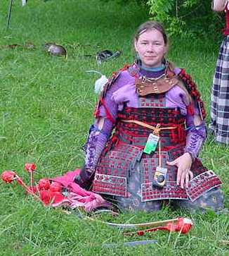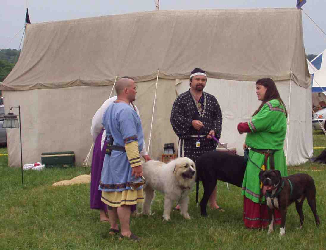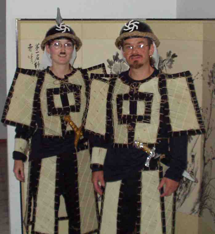 My good friends of the household decided to have a all Japanese night for my birthday at pennsic. Even though they are not Japanese personas and don't normally recreate Japanese history they all made Japanese garb to wear and cooked me a great Japanese dinner of my favorite foods. Andrew Mcleod seen in fundashi(Japanese underwear) was thrown out of Meridian royal encampment's party for being underdressed and to much hairy butt showing.